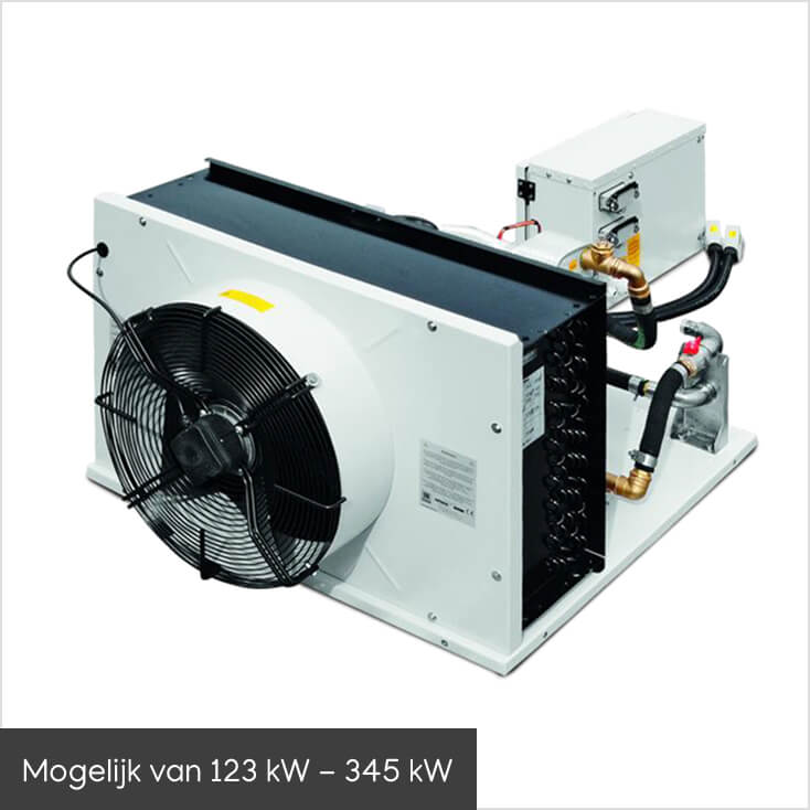 - Verwarming: lucht- en watergekoelde warmtepompen in ATEX-uitvoering met vermogens van 20 kW tot 800 kW, geschikt voor proces- en ruimteverwarming.
